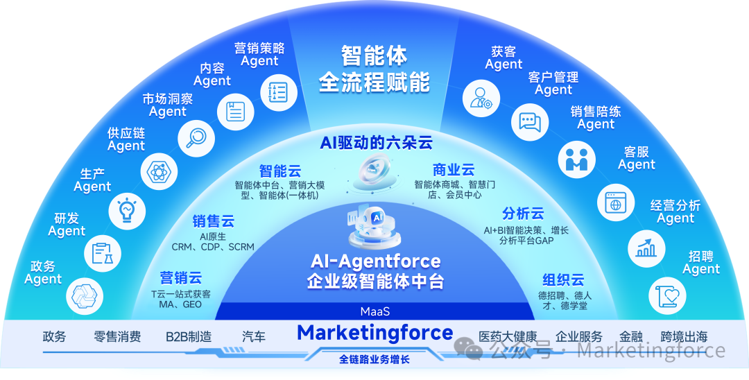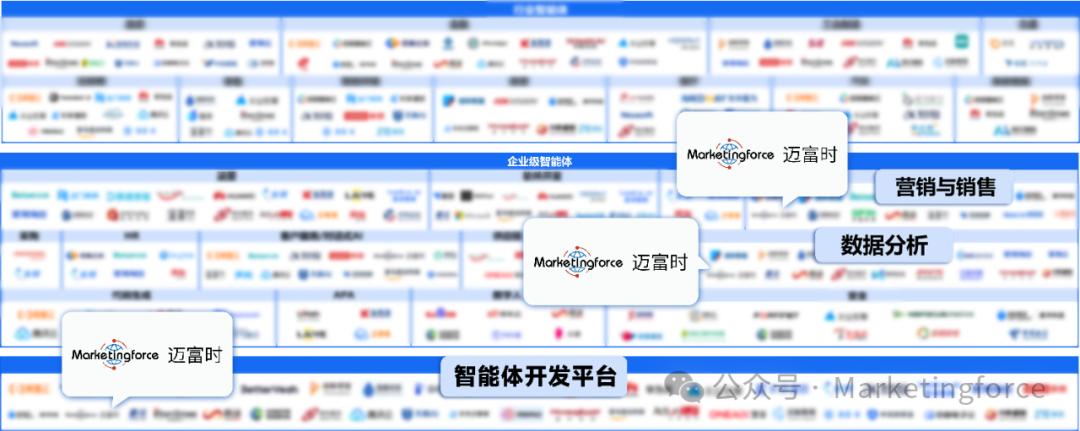 迈富时(Marketingforce)成功入选图谱中“营销与销售”、“数据分析”和“智能体开发平台”三大核心模块,彰显了公司在AI Agent领域从数据底座到开发平台再到业务应用的全面布局与落地能力。